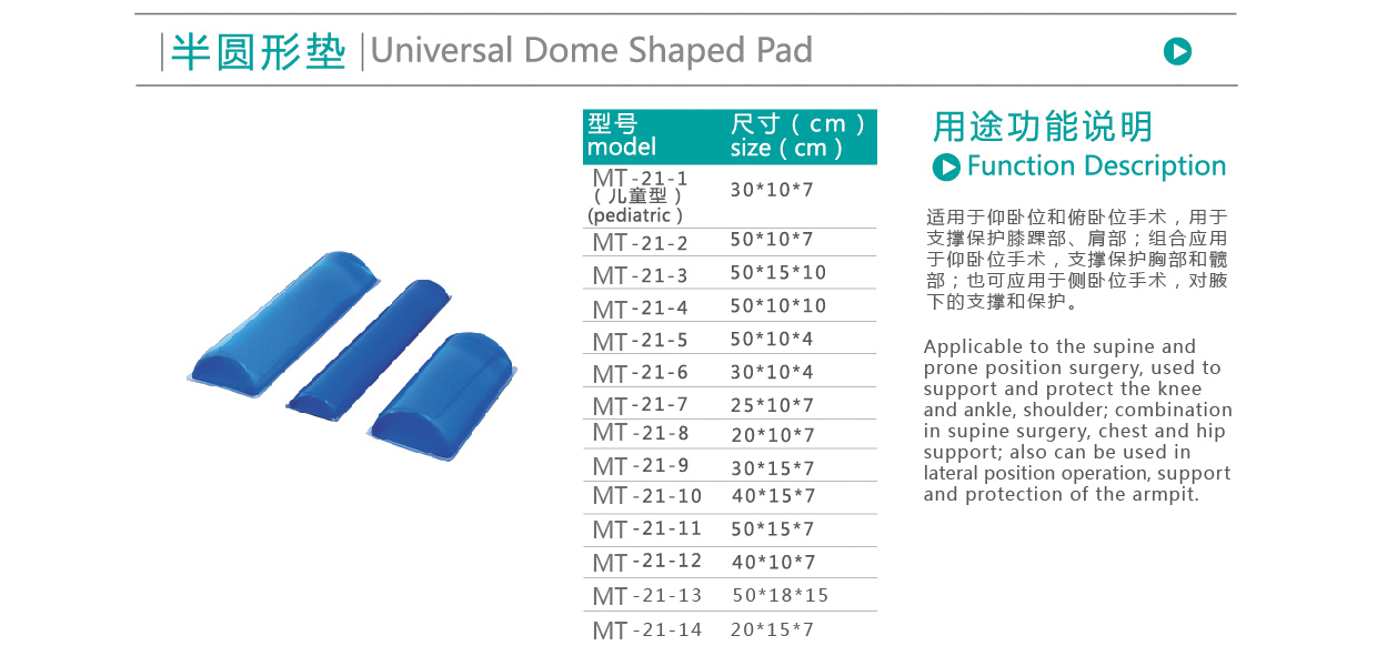 【產(chǎn)品用途】:適用于仰臥位和俯臥位手術(shù),用于支撐保護(hù)膝踝部、肩部;組合應(yīng)用于仰臥位手術(shù),支撐保護(hù)胸部和髖部;也可應(yīng)用于側(cè)臥位手術(shù),對腋下的支撐和保護(hù)